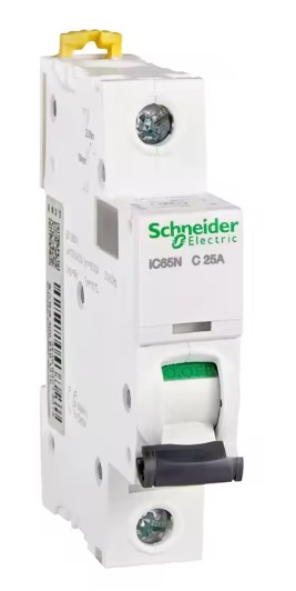 DISJONCTEUR MINIATURE MONOPHASE (1 POLE) DE SCHNEIDER , CONÇU POUR LA PROTECTION DES CIRCUITS CONTRE LES SURCHARGES ET LES COURTS-CIRCUITS. AVEC UN CALIBRE DE 25 AMPERES ET UNE COURBE DE DECLENCHEMENT C, IL EST IDEAL POUR LES INSTALLATIONS RESIDENTIELLES ET TERTIAIRES, NOTAMMENT POUR LES CIRCUITS DE CHAUFFAGE ELECTRIQUE, DE CHAUFFE-EAU OU DE PLAQUES DE CUISSON.