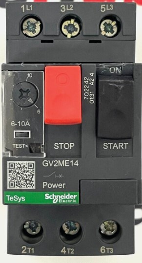 disjoncteur moteur magnéto-thermique triphasé conçu pour protéger les moteurs contre les surcharges et les courts-circuits. Il dispose d’une plage de réglage thermique allant de 6 à 10 A.