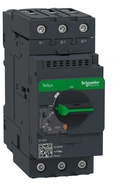 Le GV3P50 est un disjoncteur moteur magnétothermique triphasé (3 pôles) de la gamme TeSys Deca (anciennement TeSys GV3) de Shneider , conçu pour la protection des moteurs électriques jusqu’à 22 kW à 400 V. Il offre une plage de réglage thermique ajustable de 37 à 50 A pour protéger contre les surcharges et les courts-circuits.Un Disjoncteur Moteur