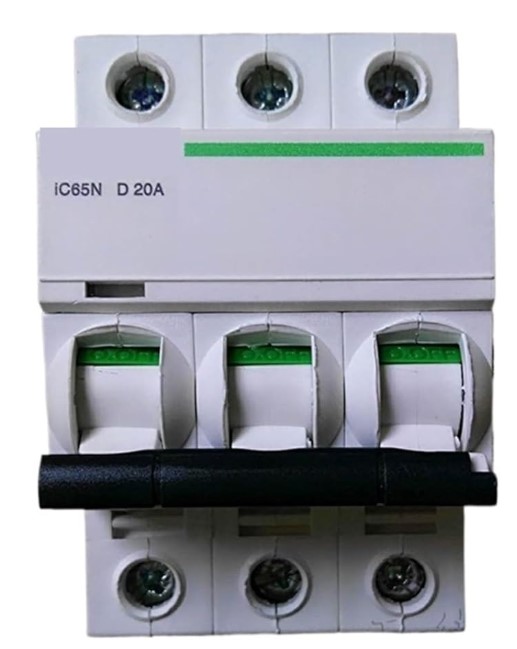 iC65N 3P D20A est un disjoncteur miniature tripolaire (3P) de 20A avec une courbe de déclenchement de type D, principalement utilisé pour la protection des circuits avec de forts appels de courant.