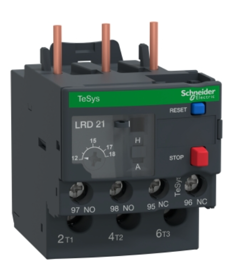 Le LRD21C (ou LRD21) est un relais de protection thermique de la gamme Schneider Electric TeSys LRD, conçu pour protéger les moteurs triphasés contre les surcharges et les défaillances de phase. Il dispose d’une plage de réglage réglable de 12 à 18 A et d’une classe de déclenchement 10A.