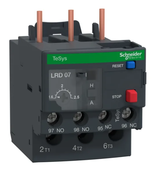 Le Schneider Electric LRD07C (souvent référencé sous le nom de base LRD07) est un relais de surcharge thermique de la gamme TeSys Deca/LRD conçu pour protéger les moteurs triphasés contre les surcharges et les défaillances de phase. Ce modèle spécifique possède une plage de réglage thermique allant de 1,6 à 2,5 A.
