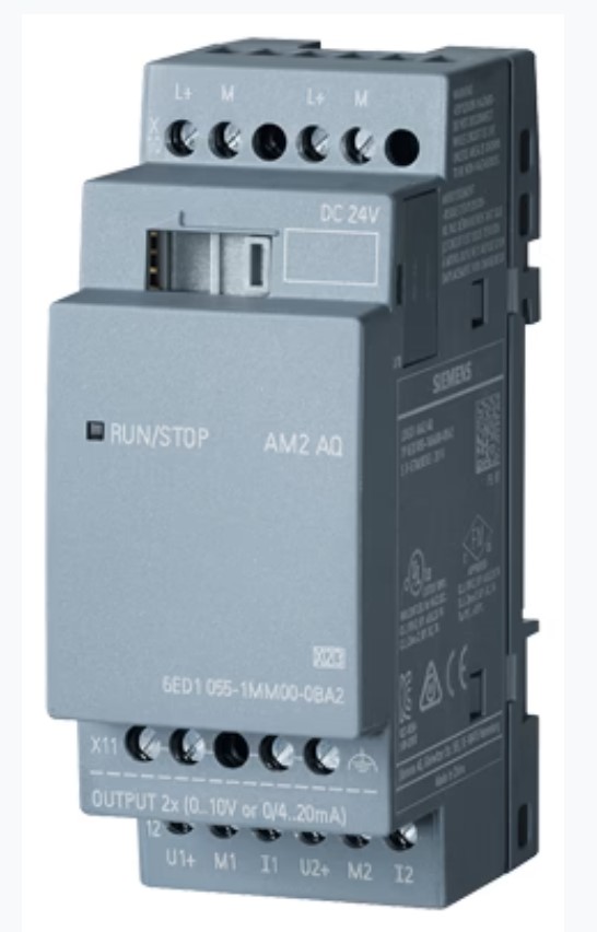 Le module d’extension Siemens LOGO! AM2 AQ (référence 6ED1055-1MM00-0BA2) est une unité de sortie analogique conçue spécifiquement pour la gamme de mini-automates LOGO! 8