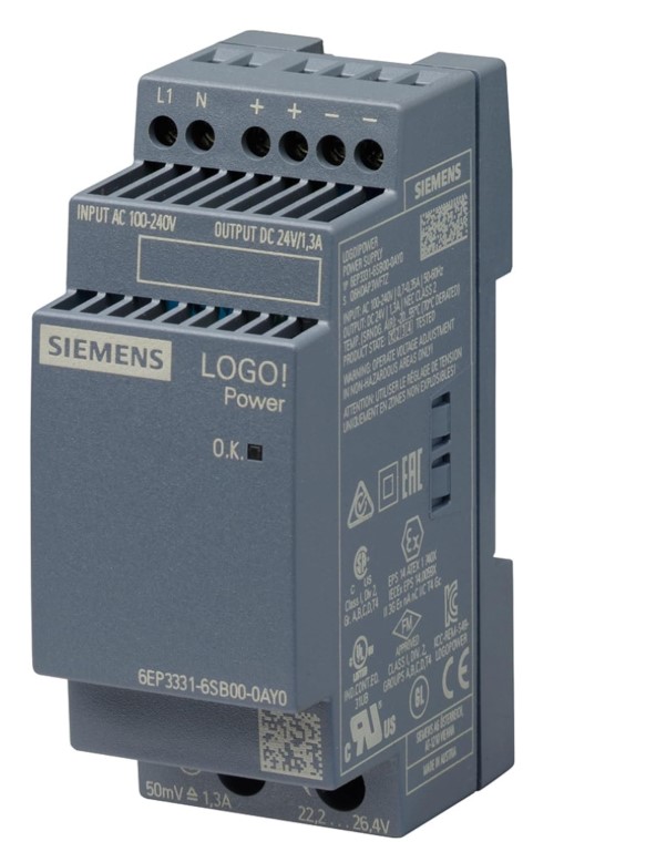 L’alimentation stabilisée Siemens LOGO!POWER 24 V / 1,3 A (référence 6EP3331-6SB00-0AY0) est un module compact de 4ème génération conçu pour le montage sur rail DIN, idéal pour les applications industrielles et domestiques à faible consommation.
